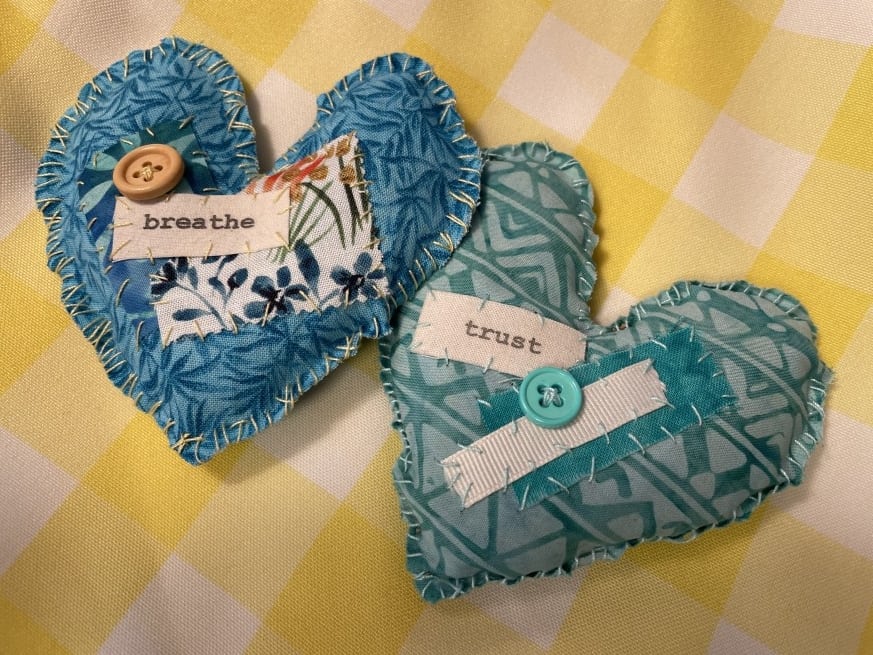 2 handmade "mended hearts," created with love by Anne Marie Bennett. Words: Breathe, TrustPrice: $25.00