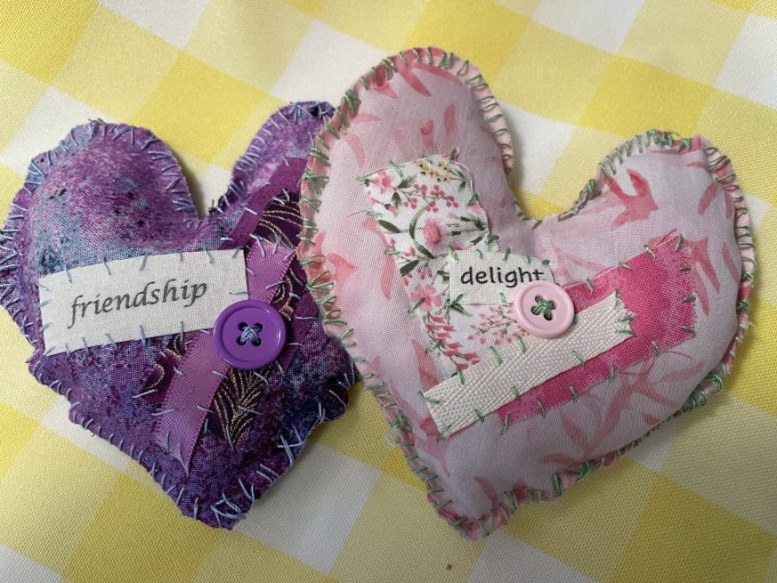 2 handmade "mended hearts," created with love by Anne Marie Bennett. Words: Friendship, DelightPrice: $25.00