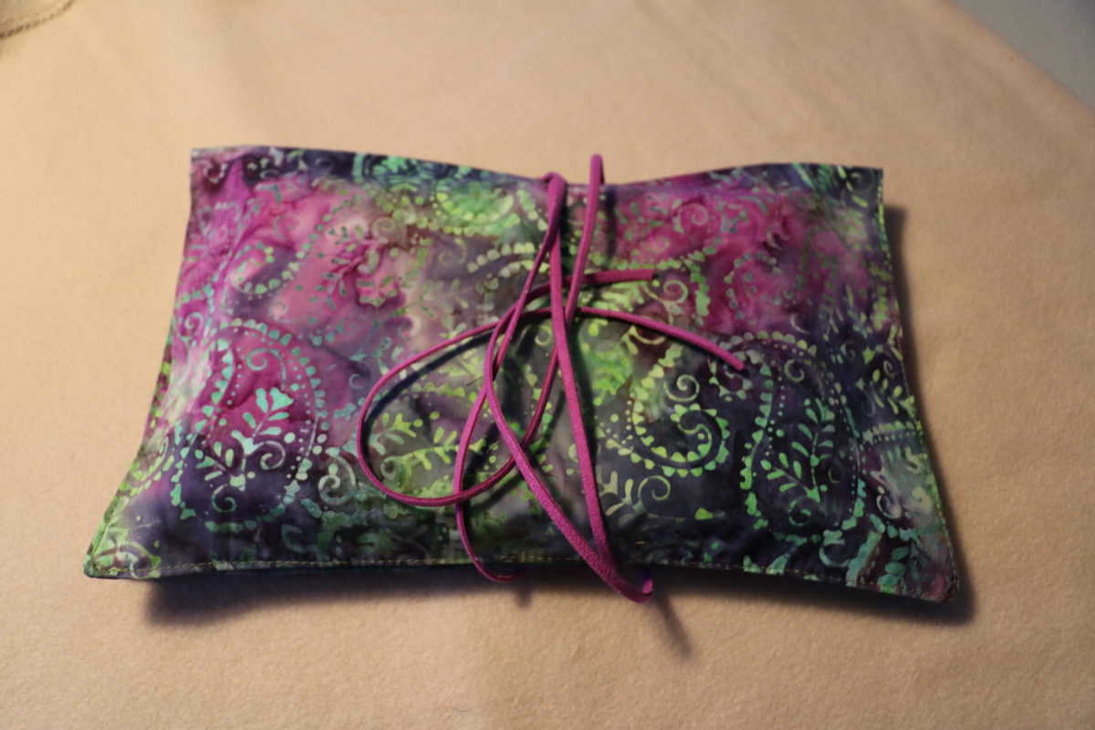 Soft purpley-green watercolor background with a pretty paisley batiked design.Price: $20.00