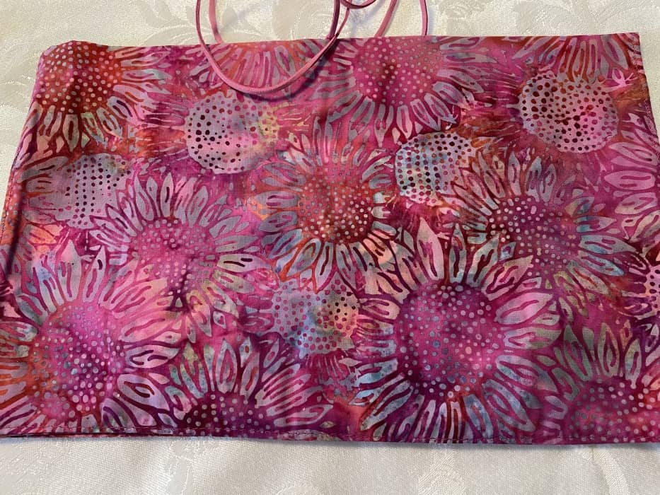 A lovely blend of pinks and deep rose in background with rust and plum sunflowers scattered all overPrice: $20.00